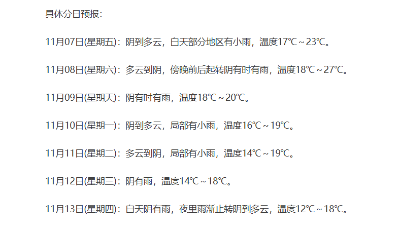刚刚过去的这个周末,天气出现了“大反转”:周六还是艳阳高照,周日就阴雨绵绵。这是因为较强冷空气的到来,让江南、华南多地开启降温模式,导致阴雨相伴体感湿凉。未来几天,受第26号台风“凤凰”外围环流影响,我市还将有较明显的降水过程。今年的台风格外“敬业”。都立冬了,太平洋洋面上还有台风在“工作”。其实台风本就不是夏季的“特产”,实际上,一年四季都会有台风生成,而登陆我国的台风最早在4月,最晚则在12月。眼下虽然我国陆地气温逐渐降低,但海洋温度仍然较高,因此还会有台风生成。据中央气象台消息,今年第26号台风“凤凰”已于11月9日凌晨加强为超强台风级。11月9日下午2时,台风“凤凰”的中心位于菲律宾马尼拉偏东方向大约275公里的海面上,强度为超强台风级(16级,52米/秒)。预计“凤凰”将于11月10日中午前后移入南海东部海面(台风级),之后强度将有所增强,最强可达强台风级,11月11日开始逐渐转向北偏东方向移动,可能于11月12日白天在台湾岛西南部沿海登陆,之后强度快速减弱。台风“凤凰”会给我们带来什么影响?中国天气网发消息称,11月9日,较强冷空气进一步东移南下,降温核心区域集中在长江以南地区,华南多地开启降温模式。随着“凤凰”不断靠近,受其外围云系影响,东南沿海风雨渐起,当地需做好防台风措施。这几天,受冷空气影响,江南、华南多地迎来降温,不少地方阴雨相伴,体感湿凉,公众需添衣保暖防感冒。具体来看义乌,市气象部门预计,本周我市前雨后晴,后期早晨气温较低,其中11月11日至11月12日,受台风“凤凰”外围环流影响,有次较明显降水过程。本周天气“转折点”出现在11月13日上午:11月13日前,阴雨是天气的“主旋律”,最低气温14℃~15℃,最高气温18℃~20℃,再加上雨水的作用,体感温度会更低一点;11月13日下午起,秋高气爽的好天气上线,虽然最高气温将回升至20℃以上,但失去了云层的保温,最低气温反而下降,尤其是11月14日至11月16日,最低气温仅10℃~11℃,昼夜温差加大,大家一定要根据气温变化及时调整穿着,谨防受凉感冒。
