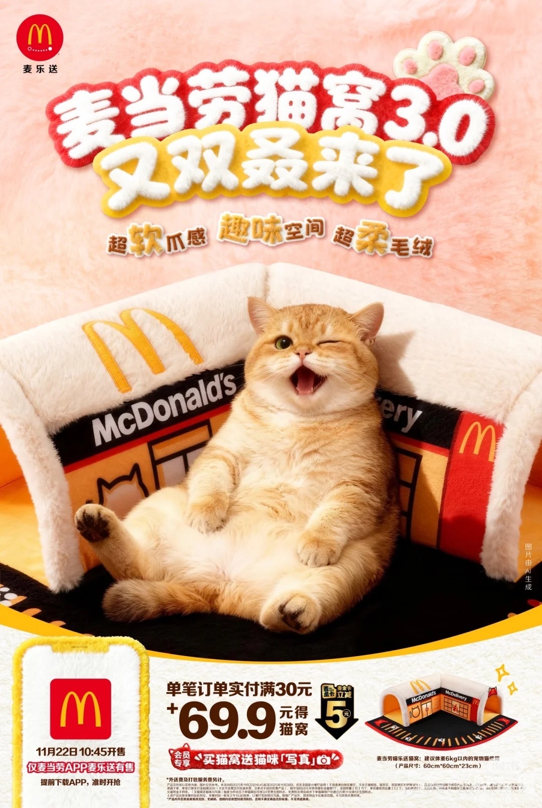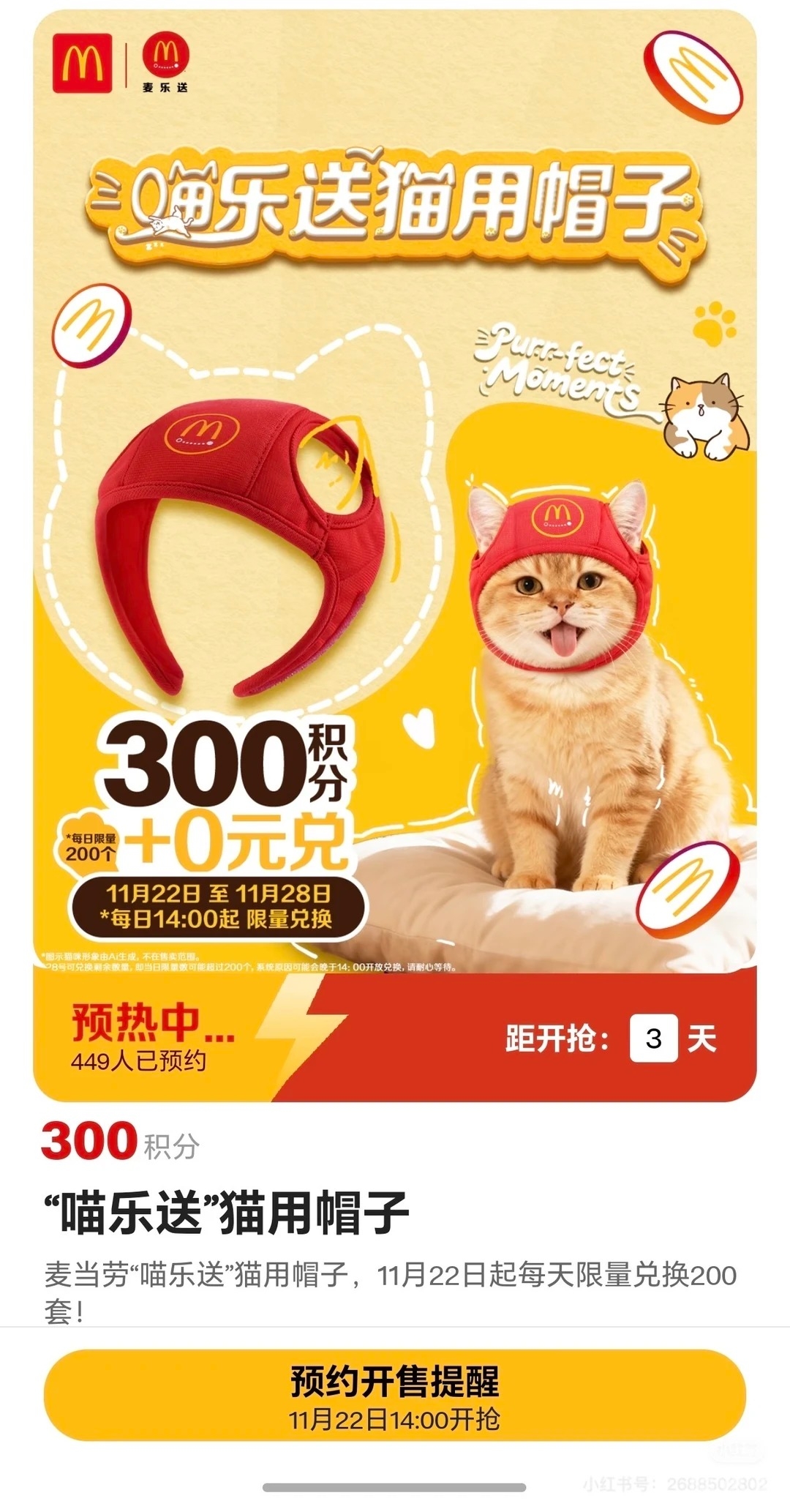 麦当劳即将免费送猫咪头盔!!!蛮可爱的!我记得我小时候都是买儿童套餐送玩具,现在只能送宠物用品了。小时候那批人长大了,不生孩子,开始养猫了。