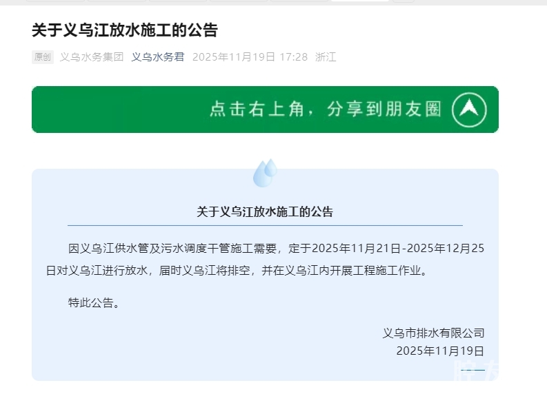 [义乌城事]义乌江怎么放水了?有什么重大工程吗? [复制链接]