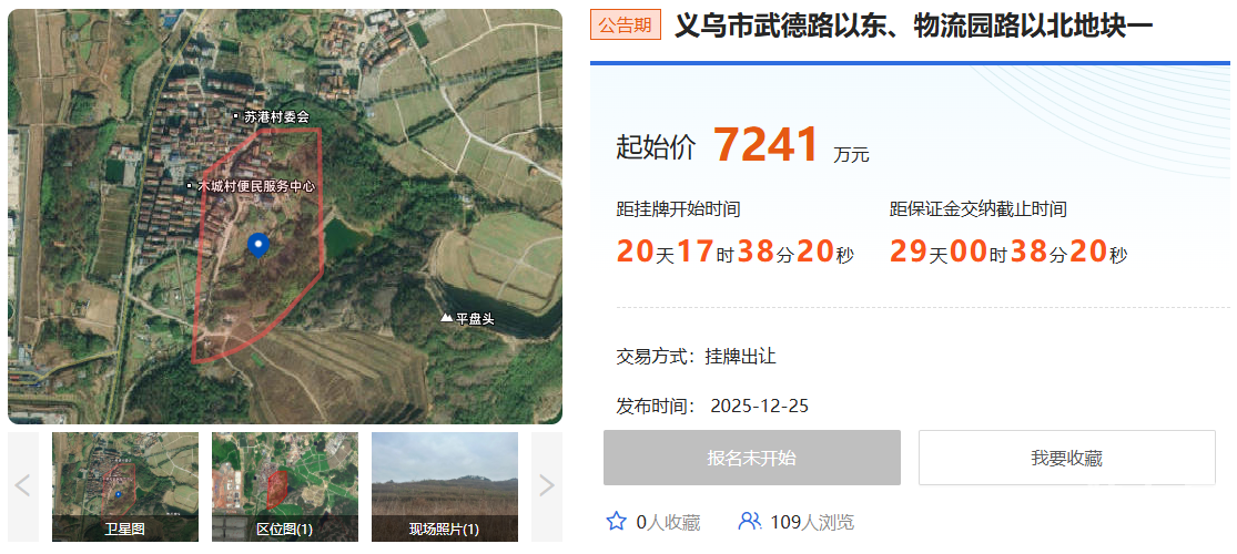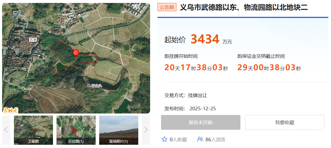 12月26日,义乌市武德路以东、物流园路以北地块一、地块二挂牌出让公告发布。