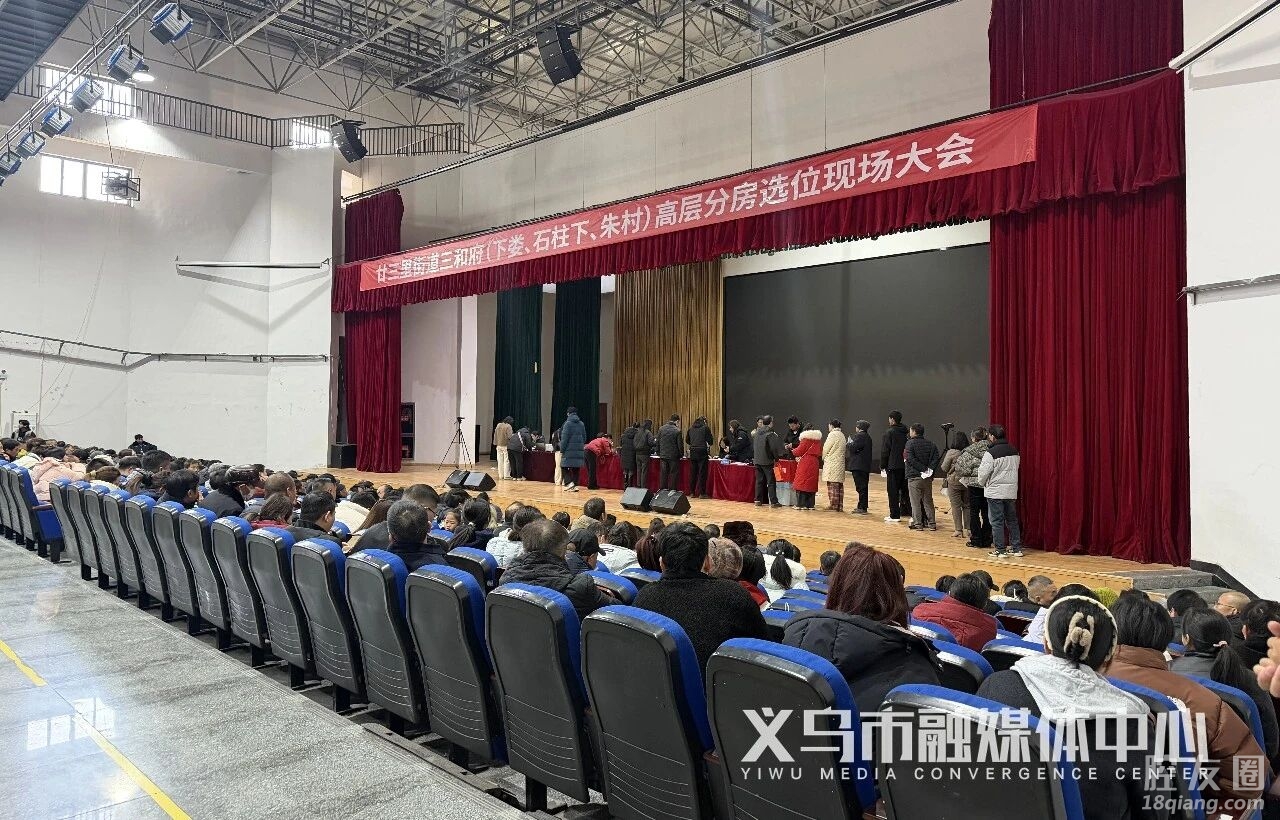12月27日,廿三里街道三和府高层分房选位活动在义乌六中举行。来自下娄、石柱下、朱村的630余户村民带着对新家的期盼,有序参与选房。
