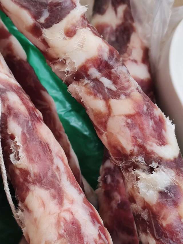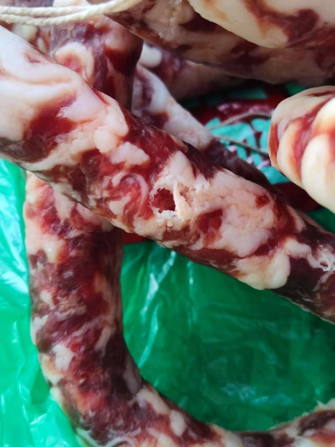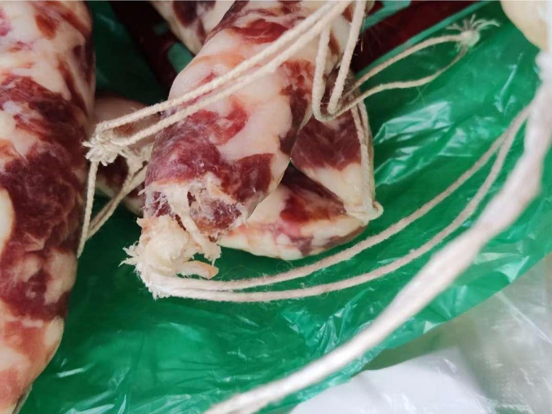 鸟还要吃肉的吗?香肠上面全是被啄了的洞洞