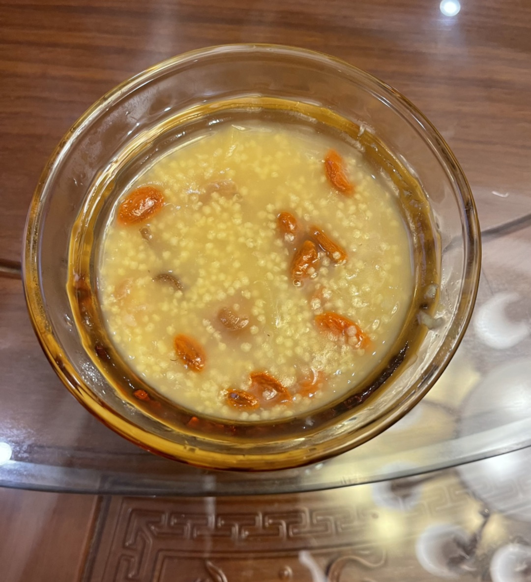 今天可以煮上一碗陈皮,苹果,桂圆,红枣,枸杞,银耳小米粥养胃暖胃。