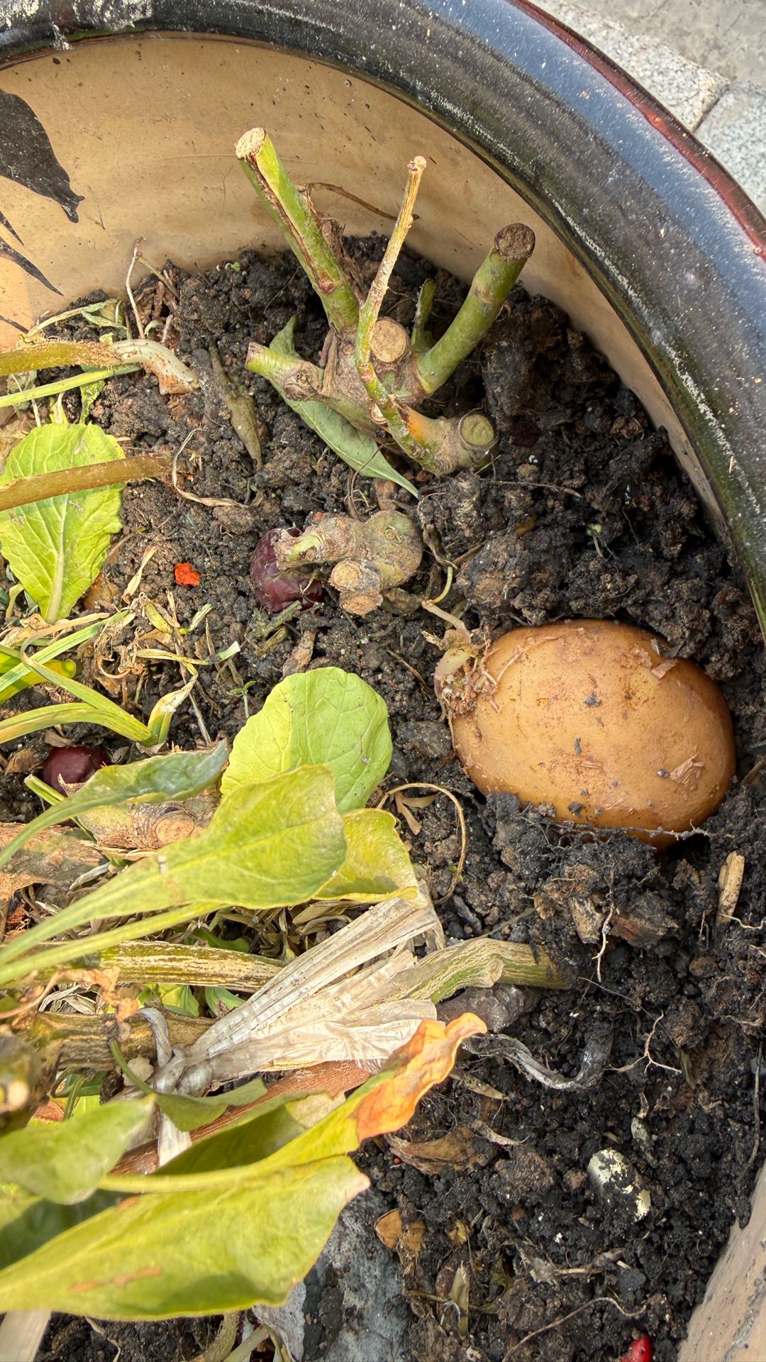 谁偷偷的把土豆种我盆里的,靠,我载了月季花的盆你就拿个破土豆就想来霸占