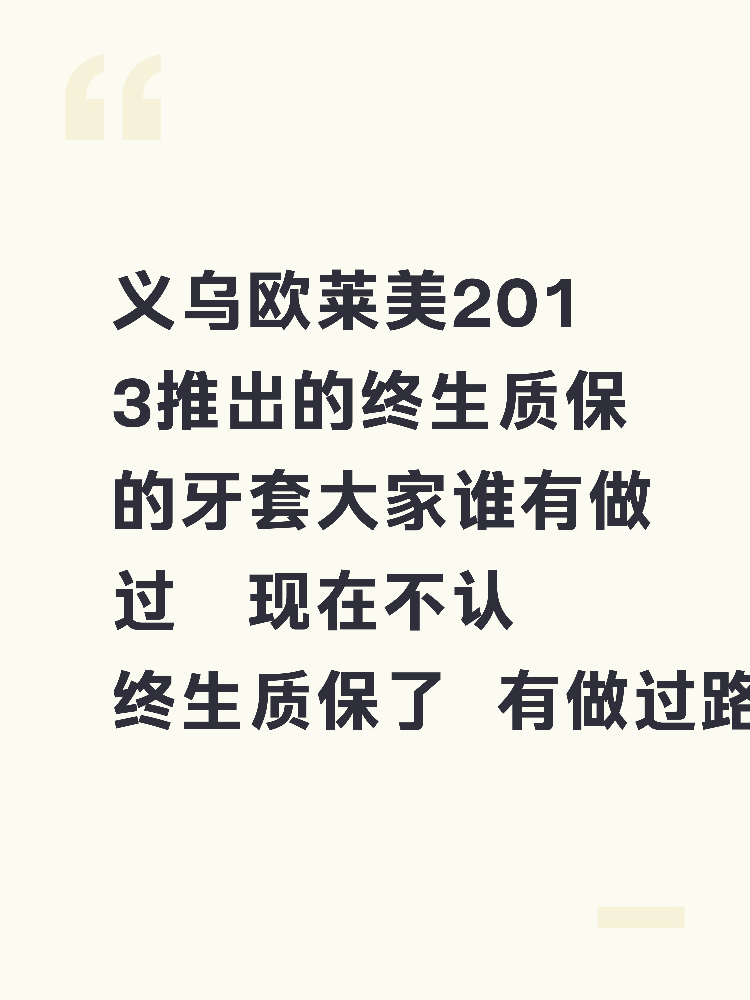 义乌欧莱美2013年推出 终生质保的牙套 大家谁有做过 有质保卡在自己手里的师傅么 路过看见麻烦能提供下 现在他们不认质保 当时我的质保卡是医生同意保管的 有自己拿这的师傅么