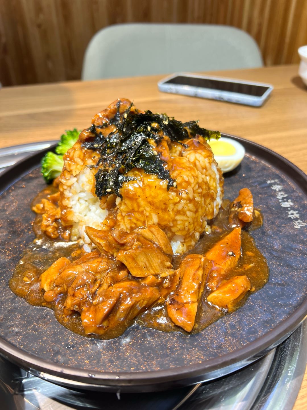 炸鸡的表皮包裹着诱人的酱油色,筷子夹起来都很酥脆,一口下去,汁水嫩肉和表皮的脆香一起在嘴里炸开,很过瘾很满足。照烧鸡排饭酱汁很给力,鸡肉份量也可以,海苔提升了口感,搅拌均匀入口就很丰富了。