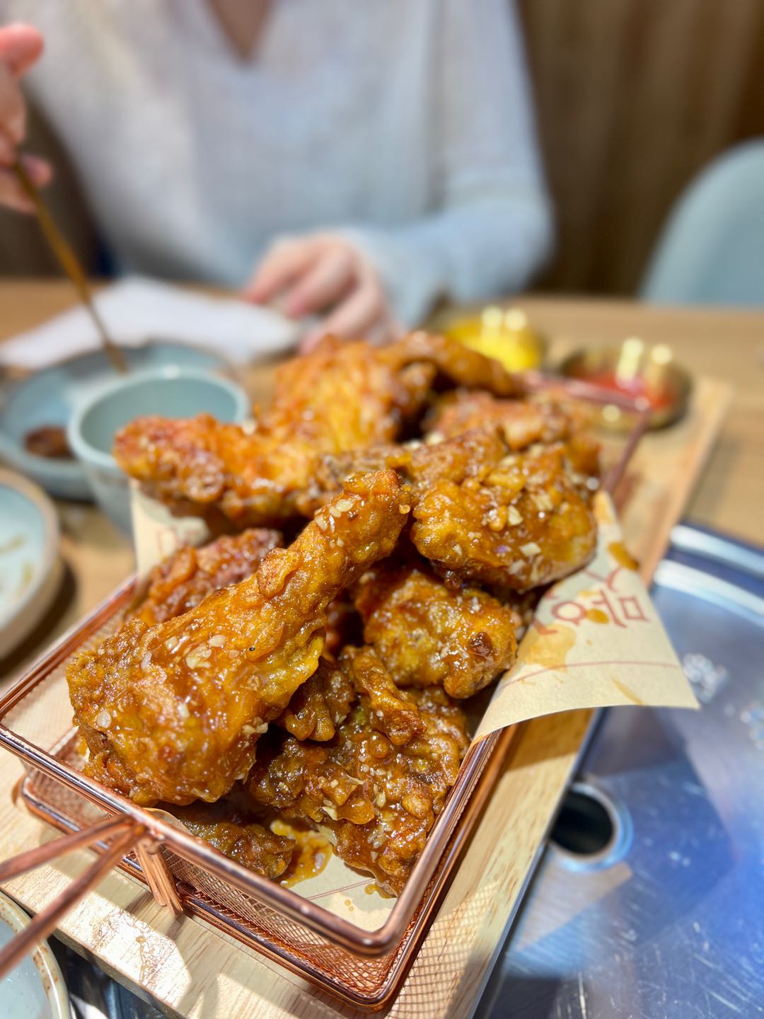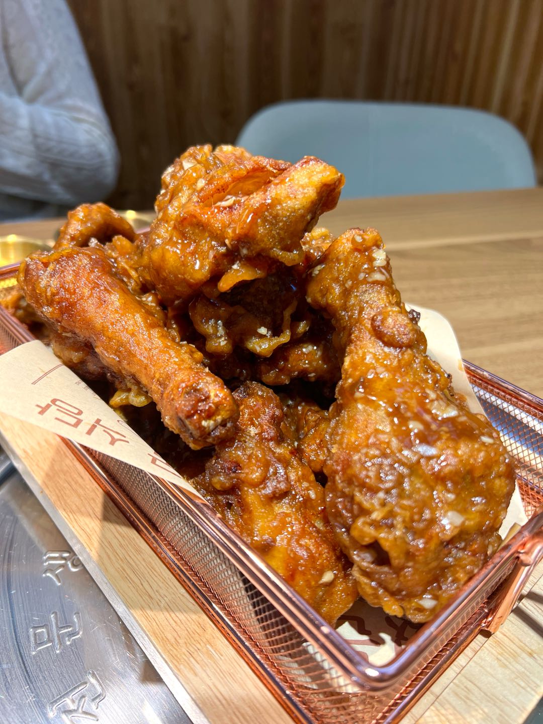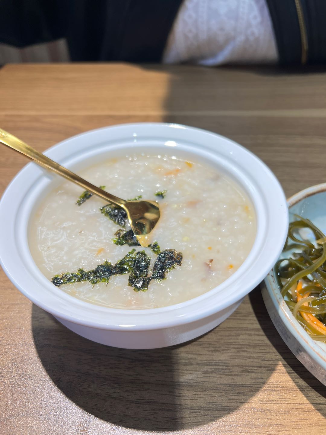 点了韩式炸鸡大份蒜香酱油味和照烧鸡排饭,还有店里活动打卡送的参鸡汤鲍鱼粥。