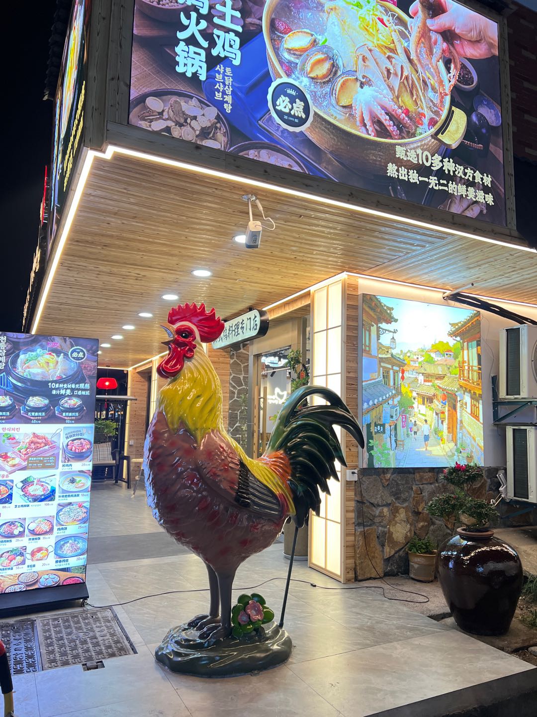 活章鱼老板娘的新店,趁着开业周一便来试试。店门口巨大的公鸡摆件很显眼,店里装修很明亮温馨。