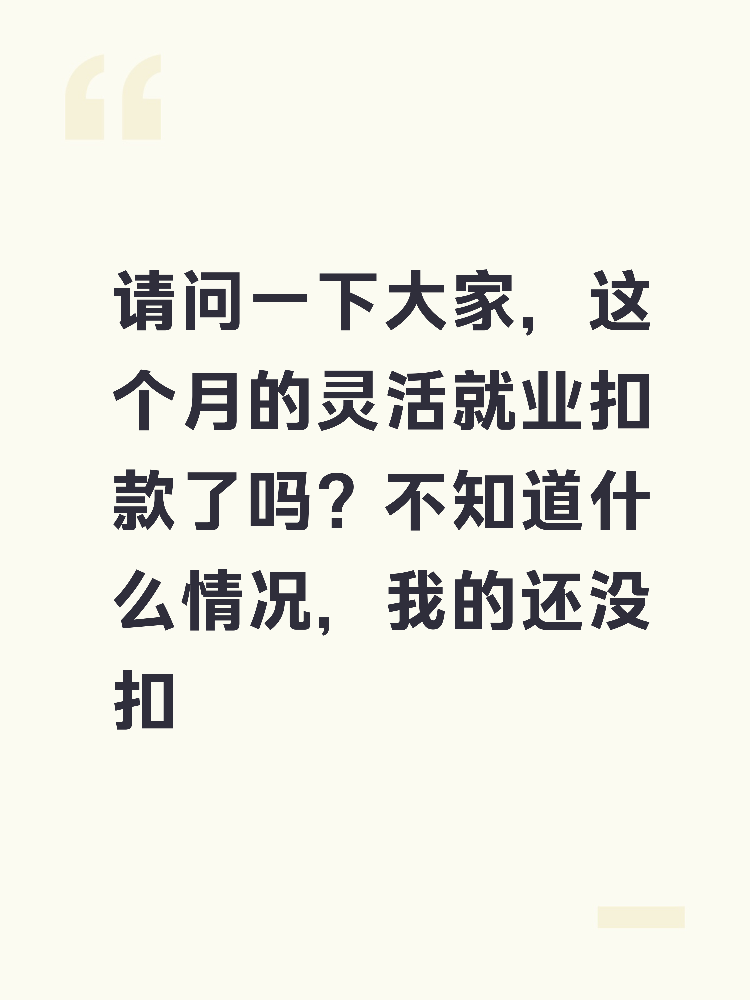 请问一下大家,这个月的灵活就业扣款了吗?不知道什么情况,我的还没扣