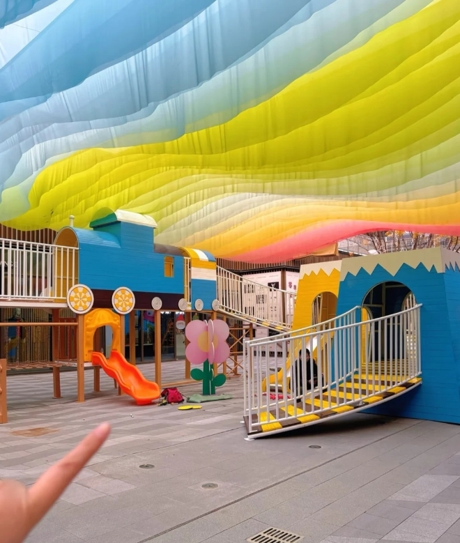 绿地朝阳门,有好一些免费的儿童游乐区,小朋友玩得不亦乐乎,大人逛的开心,人流量不就上来了嘛!