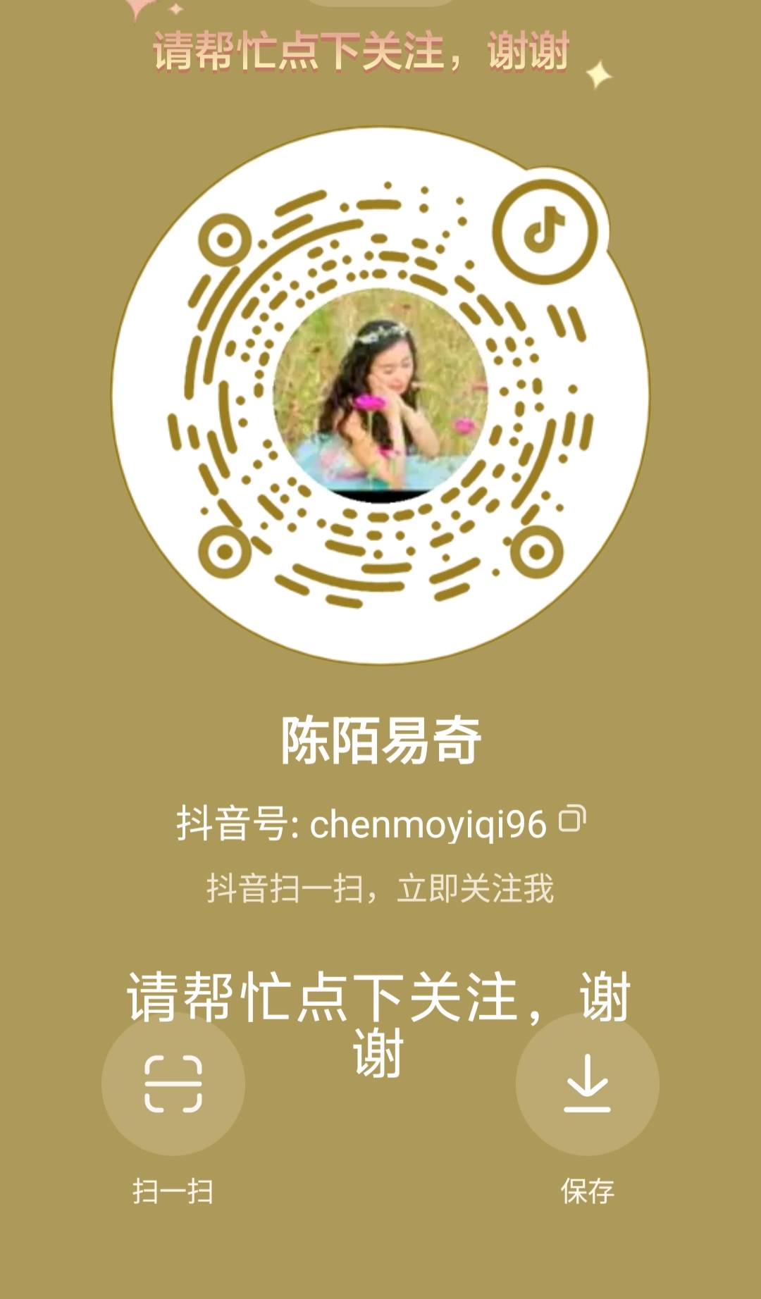 (附了引导关注的图片,上面有我的抖音账号和扫码按钮,方便大家一键关注哦~)
