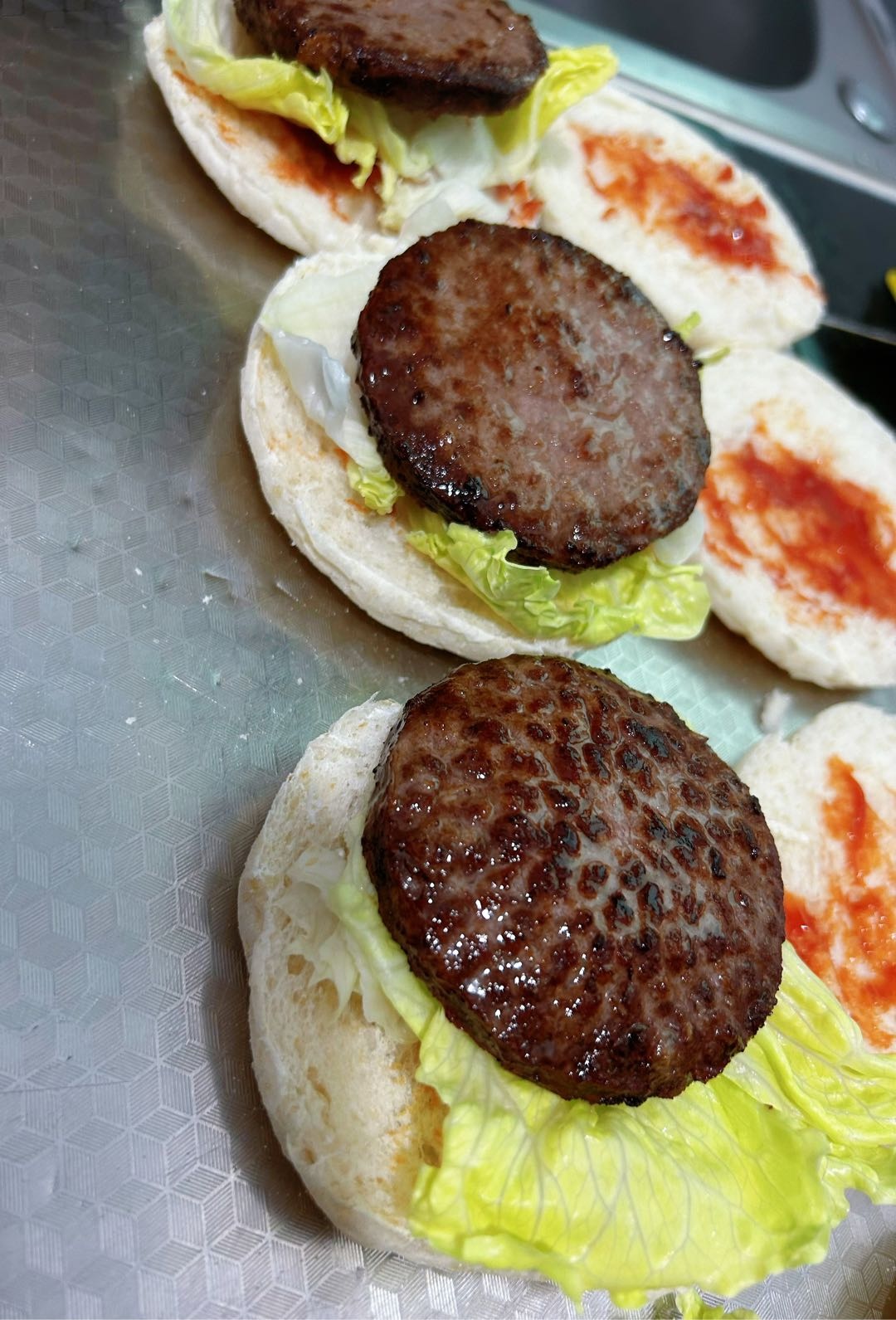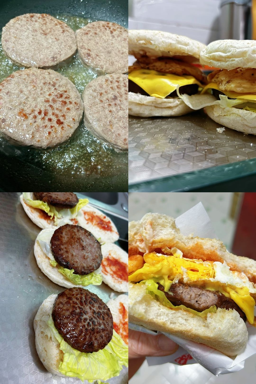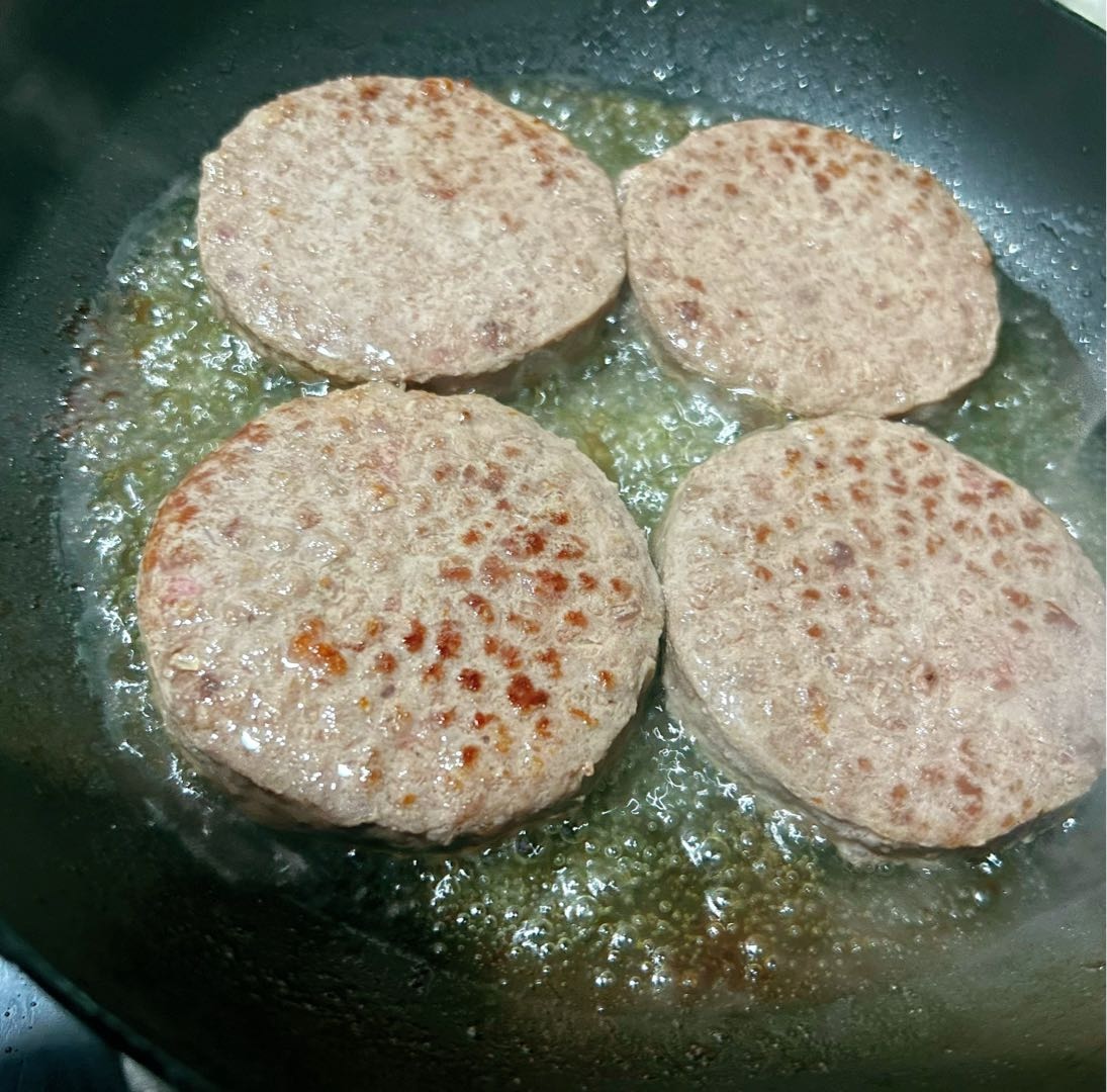 四个牛肉饼煎出老多油了