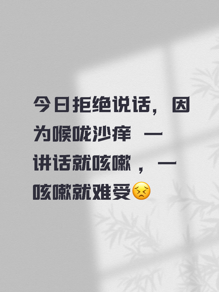 今日拒绝说话,因为喉咙沙痒一讲话就咳嗽 ,一咳嗽就难受