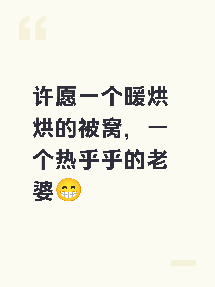许愿一个暖烘烘的被窝,一个热乎乎的老婆