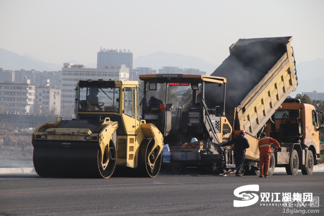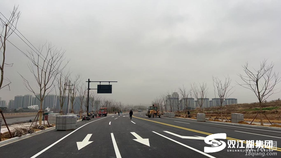 在基础设施方面,科教园区的重要交通纽带——佛堂镇江滨路(大学路-蟠龙路)市政工程也顺利完成全部沥青摊铺及标志标线施划工作