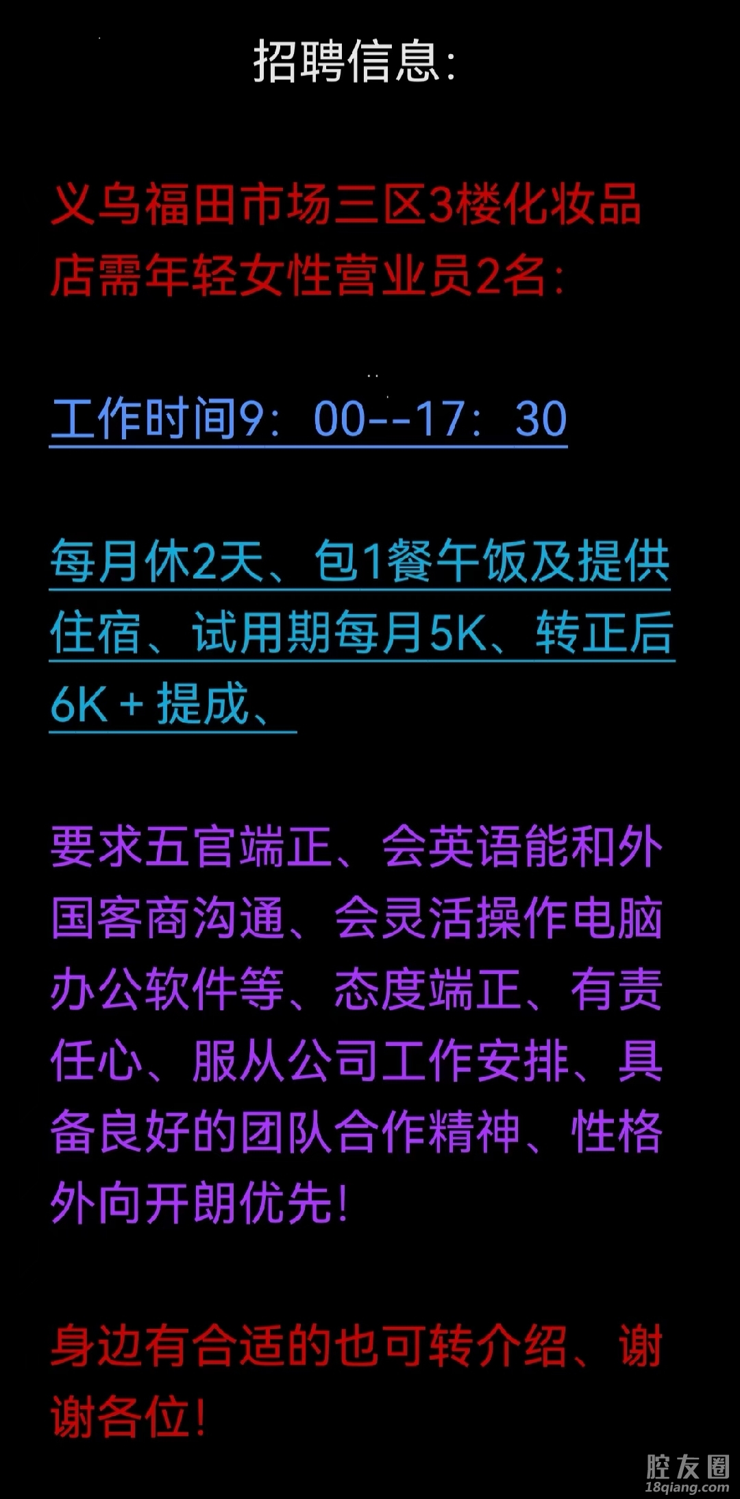 义乌三区化妆品店招2名女营业员 ..